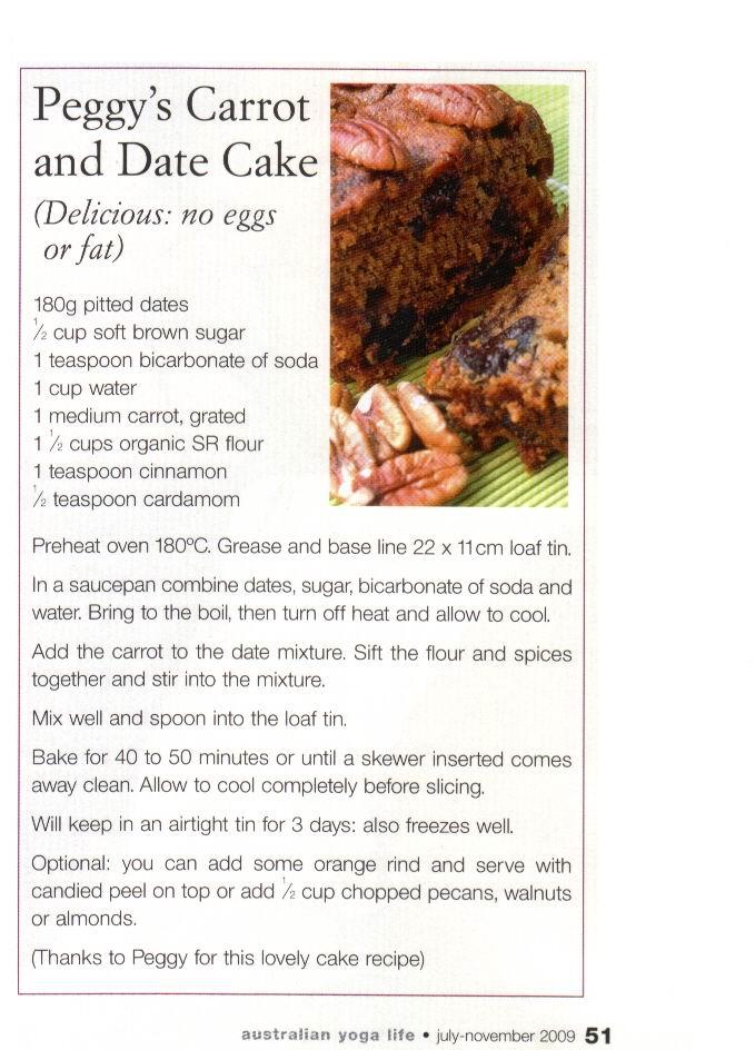 Carrot and Date Cake May 16, 2013July 5, 2013premaria One of my favourite recipe’s for egg free cake…………… delicious!! Everyone always likes it; at least that’s what they say 🙂 Share with your friends: Click to share on X (Opens in new window) X Click to share on Facebook (Opens in new window) Facebook Click to email a link to a friend (Opens in new window) Email Click to share on WhatsApp (Opens in new window) WhatsApp Click to share on Pinterest (Opens in new window) Pinterest Click to share on LinkedIn (Opens in new window) LinkedIn Like Loading...