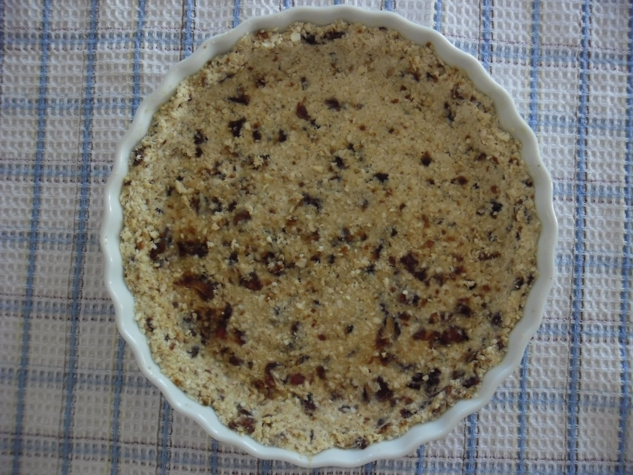 Mix nuts and dates in a food processor (don’t add coconut). Sprinkle the coconut onto the bottom of your cheesecake pan to stop the base from sticking.  Then press the nut and date mix into the pan to form the crust.