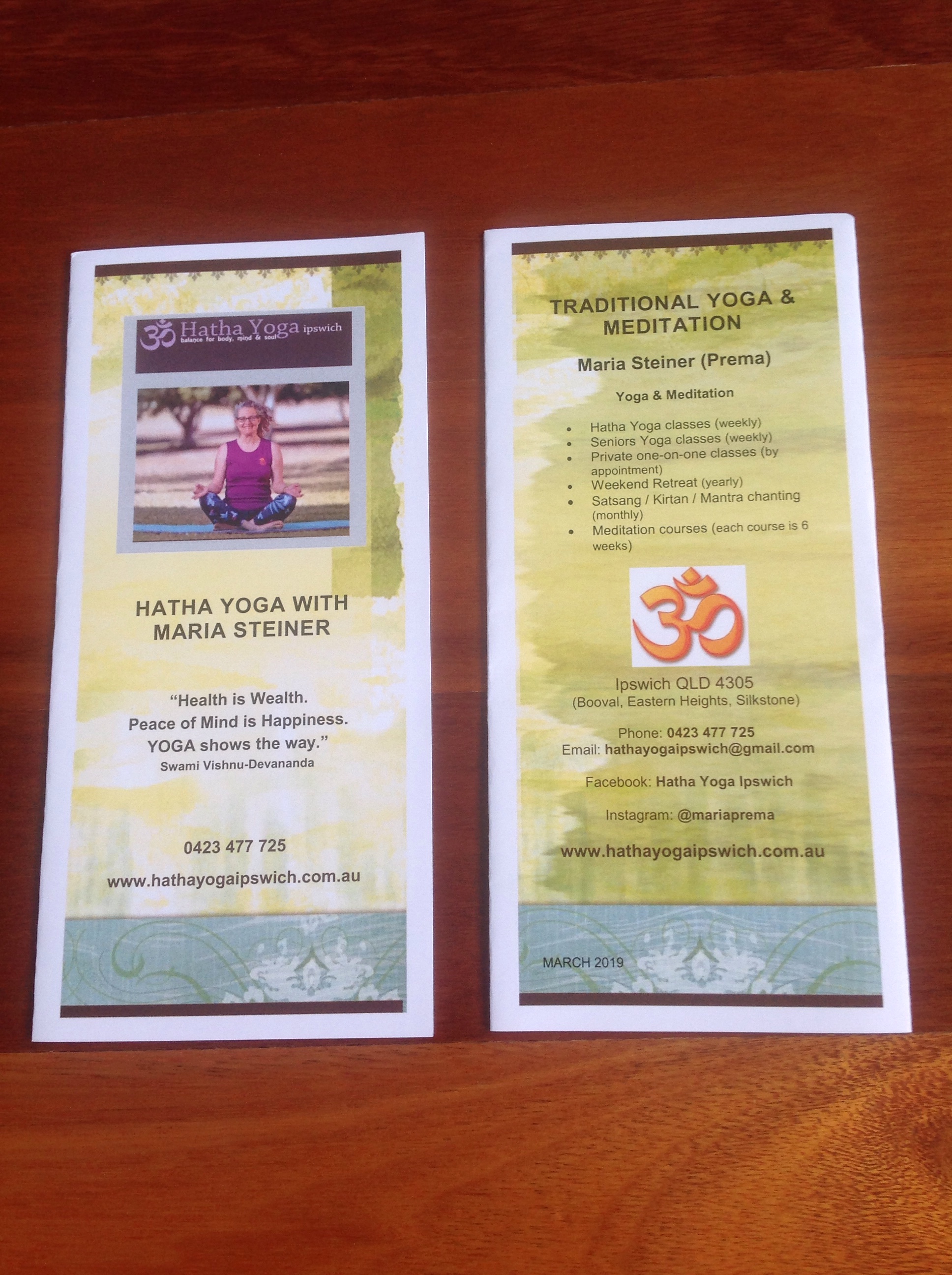 Since a couple weeks I have new brochures available. Pick up your copy, next time you are in class. Plenty of extra ones for your friends, family and anyone you think would be interested in Yoga classes & Meditation to share with.
