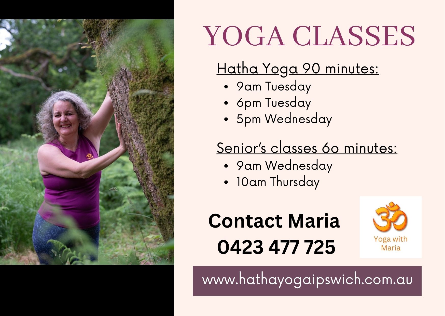 - Wednesday 6:00pm–7:30pm (90 minutes Hatha Yoga class)