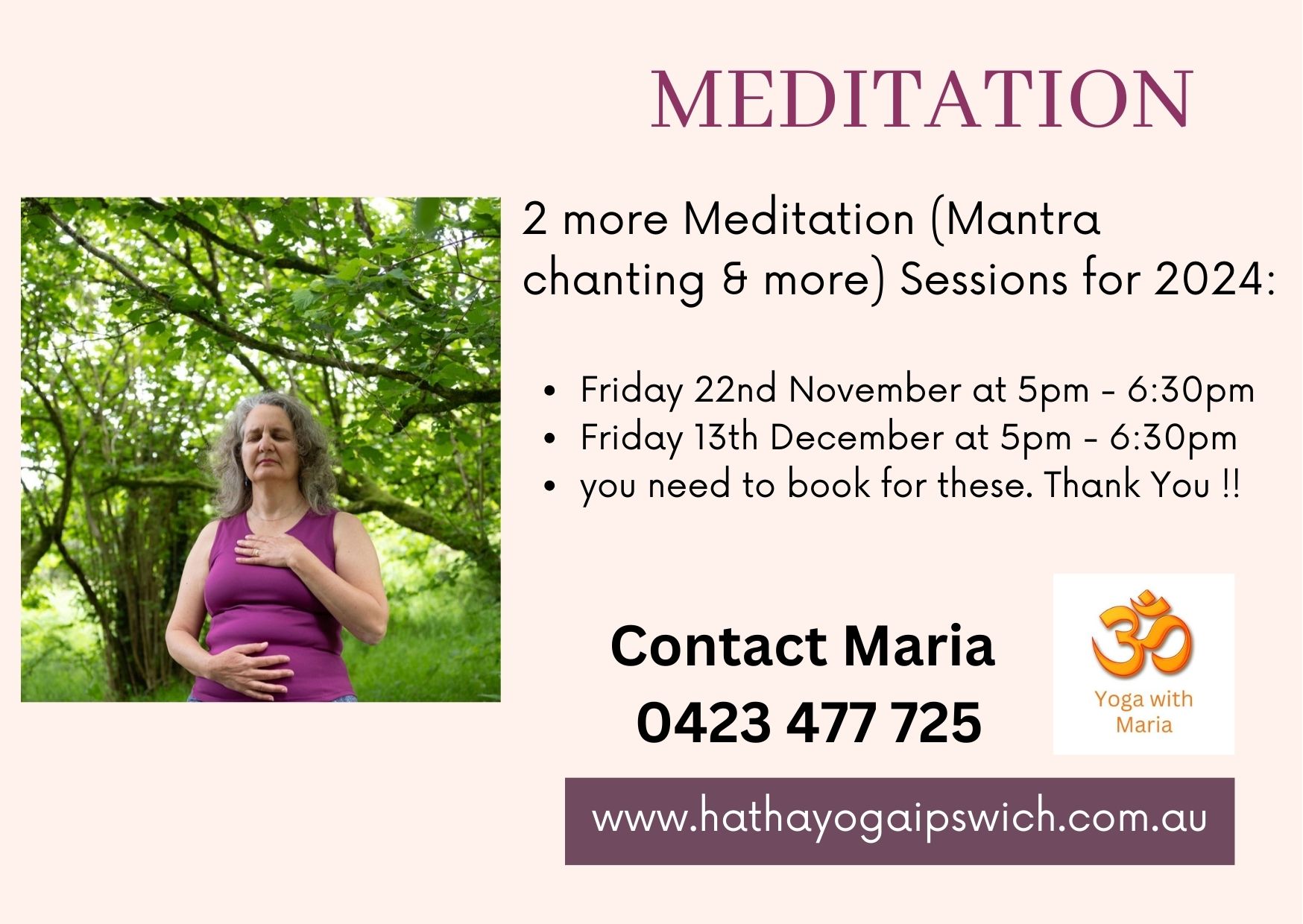 Two Meditation classes on a Friday evening at our home in Silkstone. You need to book and confirm for the meditation. Thank You: