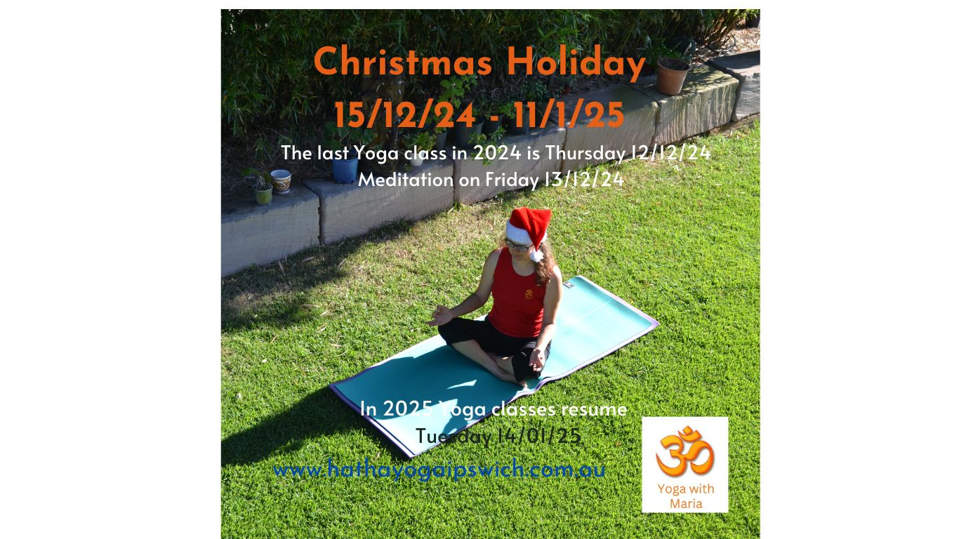 All the Yoga classes at the Scout halls and Zoom online, resume on Tuesday 14th January 2025. As per our well known yoga class times. https://hathayogaipswich.com.au/