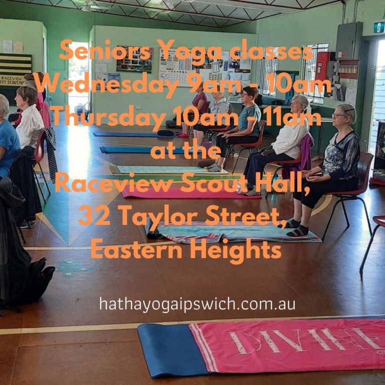 Seniors Yoga class at the Raceview Scout Hall, April 2021.